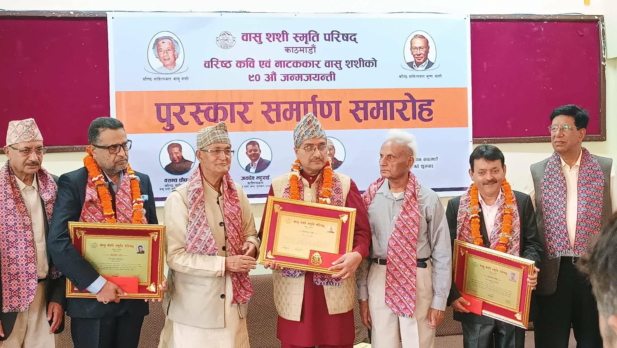 अमर साहित्यकार बाशु शशीकाे नाममा स्थापित "वासु शशी स्मृति परिषद्ले बासु शशीकाे ९० औं जन्म जयन्तीको अवसरमा आयाेजित एक कार्यक्रममा साहित्यकार वसन्त चौधरीलाई “वासु शशी साहित्य पुरस्कार २०८२” , साहित्यकार जयदेव भट्टराईलाई “वासु शशी स्रष्टा पुरस्कार-२०८२” र साहित्यकार हरि मञ्जुश्रीलाई “कृष्ण-सरस्वती साहित्य पुरस्कार-२०८२” प्रदान गरेको छ। उक्त पुरस्कारको राशि रू. २५, ०००।- (पच्चीस हजार) र स्रष्टा पुरस्कार रू. २१, ०००।- रहेको छ।