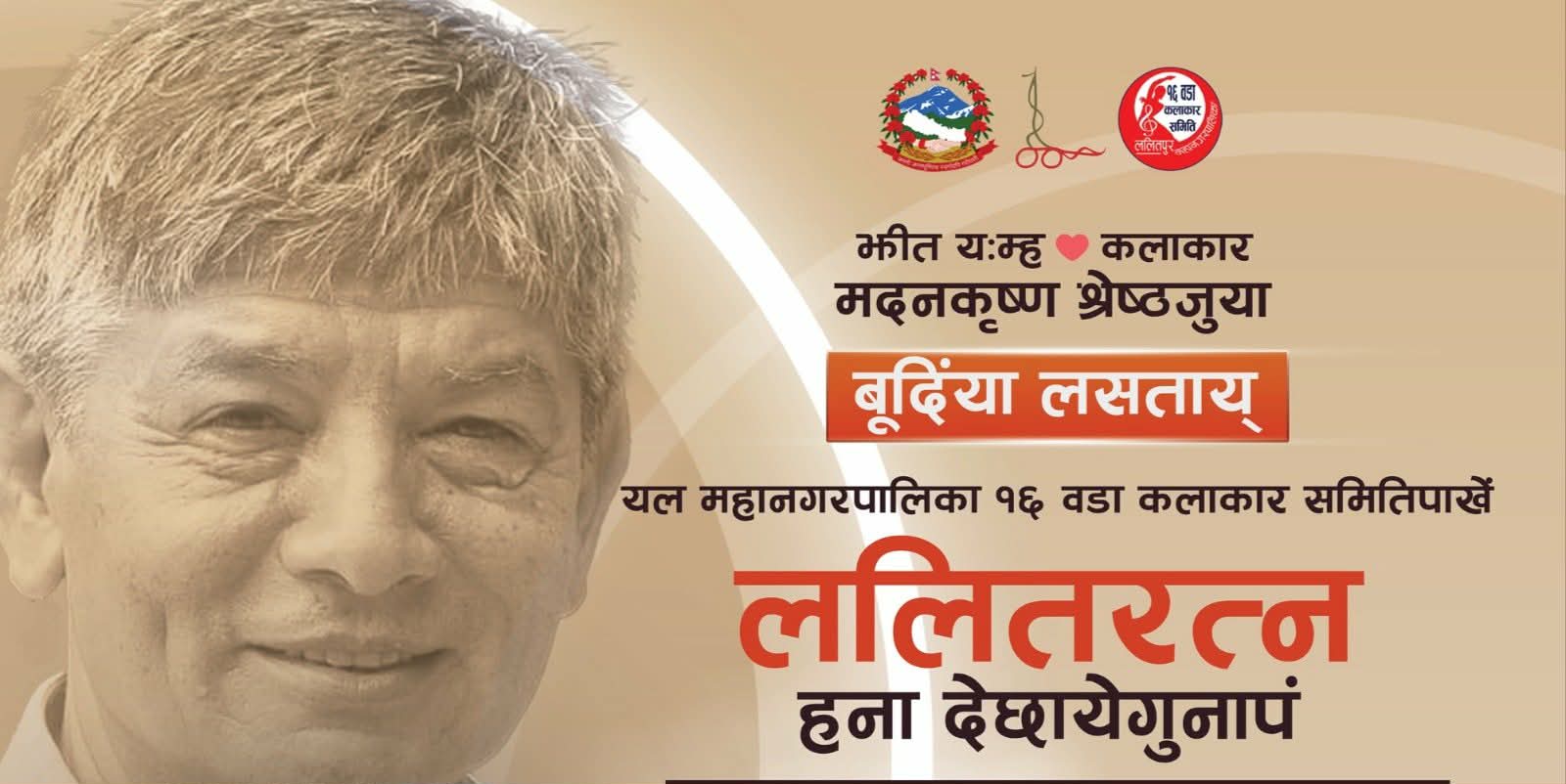 ललितपुर महानगरपालिका १६ वडा कलाकार समितिले वरिष्ठ कलाकार मदनकृष्ण श्रेष्ठको जन्मदिनको अवसर पारी सर्वाेच्च सम्मान स्वरुप ललित रत्न उपाधी सहित नागरिक अभिनन्दन गरिने भएको छ । वरिष्ठ कलाकार श्रेष्ठलाई पाटन दरवार क्षेत्रमा परम्परागत शैलीमा बाजागाजासहित स्वागत गरिने १६ वडाका अध्यक्ष निर्मलरत्न शाक्यले बताउनु भएको छ ।
