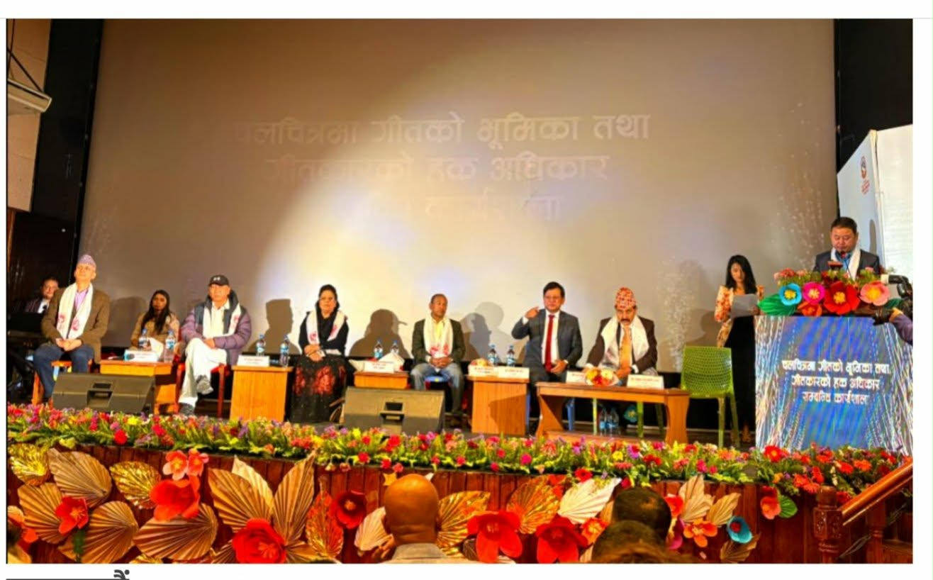 गीतकार संघ नेपालको आयोजना तथा चलचित्र विकास बोर्डको सहकार्यमा ‘चलचित्रमा गीतको भूमिका तथा गीतकारको हक अधिकार सम्बन्धी कार्यशाला’ सम्पन्न भएको छ । बुधबार चलचित्र विकास बोर्डका अध्यक्ष दिनेश डिसीको प्रमुख आतिथ्यतामा बोर्डकै सभाहलमा कार्यक्रम आयोजना गरिएको हो ।