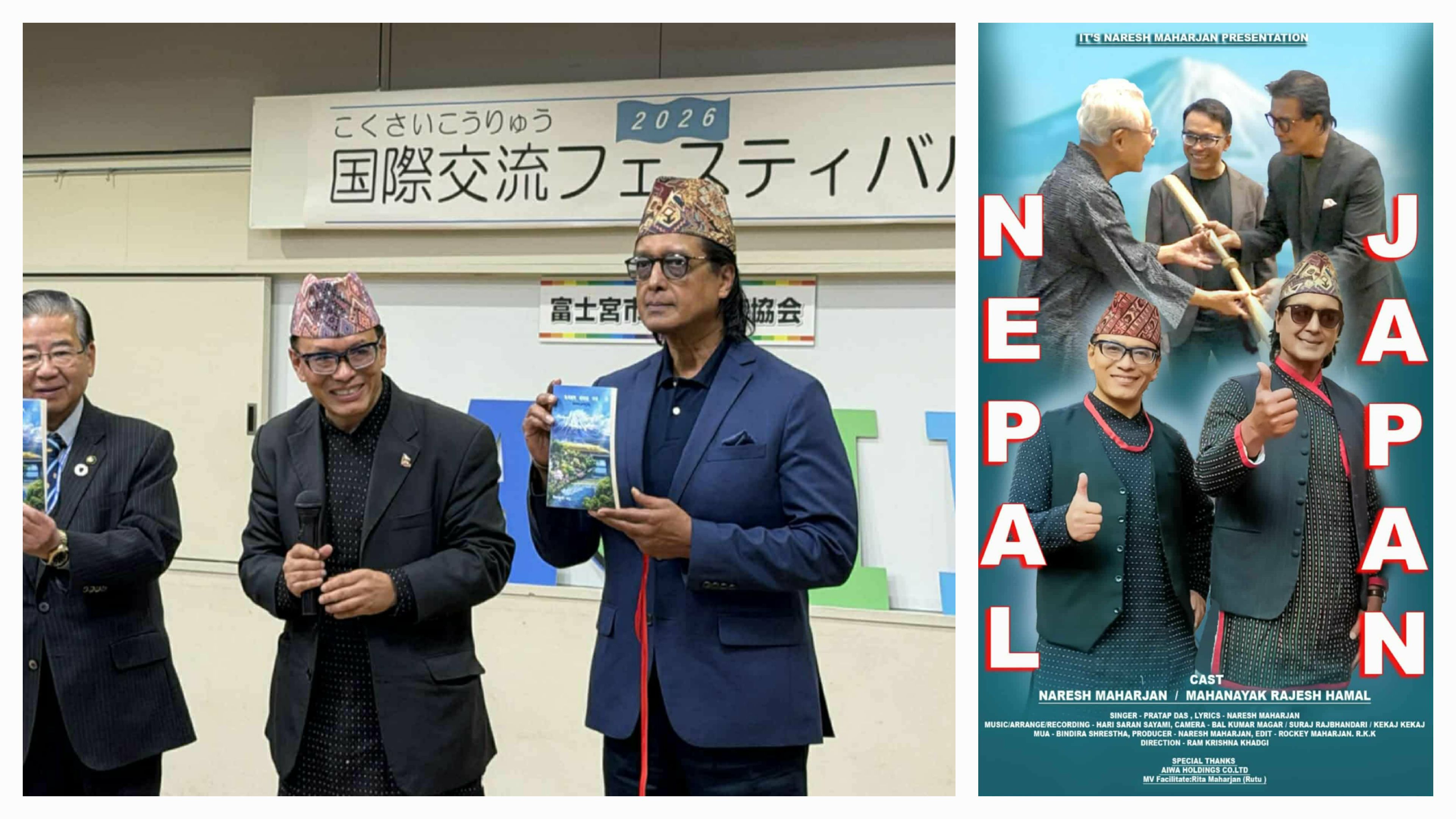 शिवरात्रीको दिनमा जापान देशको शिजुओका प्रान्तको फुजिनोमिया महानगरपालिकाको भवनमा प्रा. ई. नरेश महर्जनज्युले नेपाल जापान दुई देशको सुमधुर दौत्य सम्बन्ध गाँसेको ७० वर्ष पुगेको अवसरमा एउटा म्युजिक भिडियो र साहित्यकार रिता महर्जन रितुकाे जापान यात्रा संस्मरण पुस्तक विमाेचन समेत गरी दुइवटा नेपाली कार्यक्रम सम्पन्न भएको छ। जापानमा विगत ४ दशक देखि बस्दै आउनुभएका प्रा. ई. नरेश महर्जनज्युले नेपाल जापान दुई देशको सुमधुर दौत्य सम्बन्ध गाँसेको ७० वर्ष पुगेको उपलक्ष्यमा दुई देशको सम्बन्ध अझ प्रगाढ होस् भन्दै कामना सहित रास्ट्र भावले प्रेरित म्युजिक भिडियो "यो मन त जहाँ गए नी" प्रोमोशन भएको छ। जुन म्युजिक भिडियोमा राजेश हमालले मुख्य भुमिका गर्नुभएको छ याे भिडियो काे स्वयं प्रो. नरेश महर्जन हुनुहुन्छ।