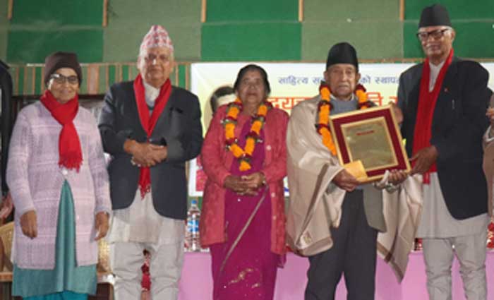 नेपाल प्रज्ञा प्रतिष्ठानका पूर्वकुलपति गङ्गाप्रसाद उप्रेती, वरिष्ठ समालोचक प्रा डा दयाराम श्रेष्ठ, साहित्यकार कोशराज न्यौपाने, सदनका अध्यक्ष प्रा डा हेमनाथ पौडेल र पूर्वमन्त्री एवं साहित्यकार शान्ता मानवीले संयुक्त रूपमा सो सम्मान प्रदान गर्नुभएको हो । सम्मानका साथ रु ५० हजार राशि रहेको छ । कार्यक्रममा ‘साहित्य सदन’ प्राज्ञिक प्रकाशनको लोकार्पण पनि गरिएको थियो ।