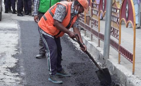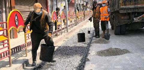 महानगरले भत्काएको न्युरोड सडक विभागले टाल्दै