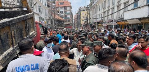 काठमाडौं - सडक निर्माण रोक्न काठमाडौं महानगर प्रहरी पुगेपछि न्यूरोड क्षेत्र तनावग्रस्त बनेको छ। काम रोक्न महानगर प्रहरी पुगेपछि स्थानीयहरूले सडक निर्माणको काम रोक्न पाइँदैन भन्दै नाराबाजी गरेका थिए। अहिले महानगर र स्थानीयबीच छलफल भइरहेको छ। काठमाडौं महानगरले फुटपाथ विस्तार गर्ने भन्दै न्यूरोड सडक किनाराको पीच भत्काएको थियो। महानगरले भत्काएको उक्त आज सडक विभागले बनाउन थालेको थियो। स्थानीयहरूले...
