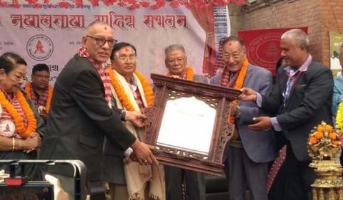 भक्तपुर । बिराट नेपालभाषा साहित्य सम्मेलन गुथिको ६२ औं साहित्य सम्मेलन बीच नेवाः अग्रज साहित्यकार मल्ल के. सुन्दरलाई एक लाख रुपियाँ नगद सहित सम्मान गरेको छ । यो वर्ष मात्रै स्थापना भएको बिराट पूर्ण पुरस्कारको एक लाख रुपियाँ र नगद प्रदान गरी मल्ल के. सुन्दरलाई सम्मान गरेको हो । बिराटका सल्लाहकार स्वर्गीय पूर्ण बैद्यको स्मृतिमा स्थापित कोषबाट पहिलोपल्ट यो पुरस्कार प्रदान गरिएको हो । प्रमुख अतिथि...