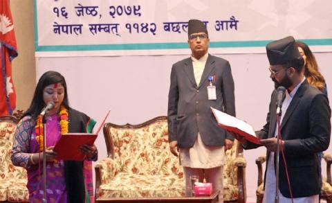 काठमाडौंका मेयर बालेन र उपमेयर सुनिताले नेपालभाषाबाट शपथ लिए