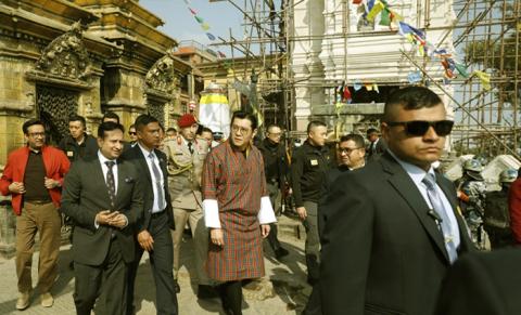 काठमाडौँ, भुटानी नरेश जिग्मे खेसर नाम्गेल वाङचुकले विश्वसम्पदा सूचीमा सूचीकृत स्वयम्भूनाथको पूजा अर्चनासहित दर्शन गर्नुभएको छ । यसअघि स्वयम्भू व्यवस्थापन तथा संरक्षण महासमितिका पदाधिकारीले स्वयम्भूनाथ परिसरमा भुटानी नरेशलाई स्वागत गर्नुभएको थियो । करिब आधा घण्टा त्यहाँ रहनुभएको भुटानी नरेशले स्वयम्भूनाथ परिसरबाट काठमाडौँ उपत्यकाको दृश्यावलोकन गर्नुभयो । आज बिहान नेपाल आइपुग्नुभएका भुटानी...