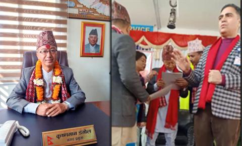 कीर्तिपुर नगरका नवनिर्वाचित मेयर कृष्णमान डंगोलद्वारा पदभार ग्रहण, कीर्तिपुर/गएको मंसीर १६ गतेस्थानीय तह उपनिर्वाचनमा नेपाली कांग्रेसबाट विजयी हुनुभएका कीर्तिपुर नगरपालिकाका नवनिर्वाचित मेयर कृष्णमान डंगोलले शुक्रबार नगरपालिका कार्यालय पुगी पदभार ग्रहण गर्नुभएको छ । पदभार ग्रहण गर्नु अघि शुक्रबार बिहान कीर्तिपुर ९ वडास्थित कृष्ण क्याटरिङ हलमा पद तथा गोपनियताको सपथ ग्रहण गर्नुभएको थियो । पदभार...