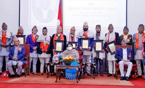 नेपाली गीत–संगीतका विशिष्ट दस्तावेज नातिकाजीको ९६ औं जन्मजयन्तीका अवसरमा राष्ट्रपति भवन शितल निवासमा आयोजित कार्यक्रममा राष्ट्रपति विद्यादेवी भण्डारीले नातिकाजी सम्मान तथा पुरस्कार वितरण गर्नु भएको छ । राष्ट्रपति भण्डारीले बरिष्ठ वाद्यवादक नोर्बु छिरिङ्ग लामालाई नातिकाजी राष्ट्रिय विशिष्ट स्रष्टा सम्मान २०७६ र बरिष्ठ गीतकार तथा समाजसेवी बालकृष्ण सजिव, गीतकार सुरेन्द्र राना, बाद्यबादकराजु...