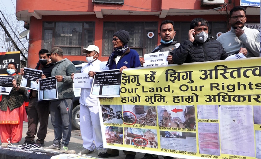 विकासको नाममा जारी प्रतिगमनविरुद्ध प्रतिरोधको ब्यानरमा भएको विरोध प्रदर्शनमा मापदण्ड ७–७ मिटर छुट्याई आफ्नो स्वबासी प्रमाणित जग्गामा घर बनाई बसोबास गर्न पाउनु हाम्रो नैसर्गिक अधिकार हो लगायतका प्लेकार्ड तथा व्यानर समेत प्रदर्शन गरिएको थियो ।