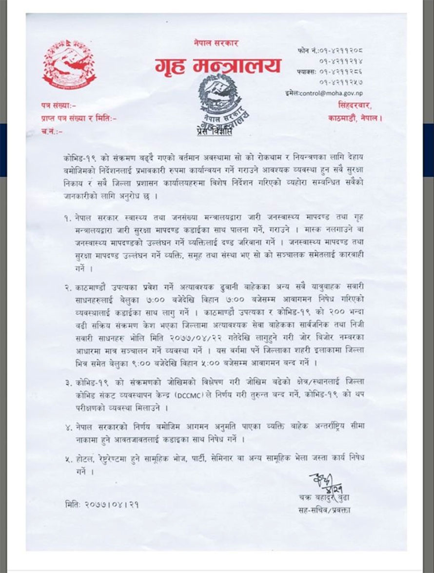 आइतबार बेलुका बसेको गृहमन्त्रालयको बैठकले यसरी कहिं कतै कार्य भएको पाइएमा कारबाही गर्न प्रहरी प्रशासनलाई निर्देशन दिएको थियो ।