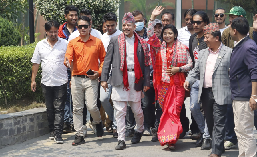 स्थापित र डङ्गोल दिउँसो बाजागाजासहित उम्मेदवारी मनोनयनका लागि मुख्य निर्वाचन अधिकृतको कार्यालय राष्ट्रिय सभागृह पुगेका हुन् । स्थापित काठमाडौँ महानगरको पूर्वप्रमुख तथा प्रदेशसभा सदस्यसमेत भइसकेका छन् । उनले प्रदेशसभा सदस्यबाट राजिनामा गरिसकेका छन् ।