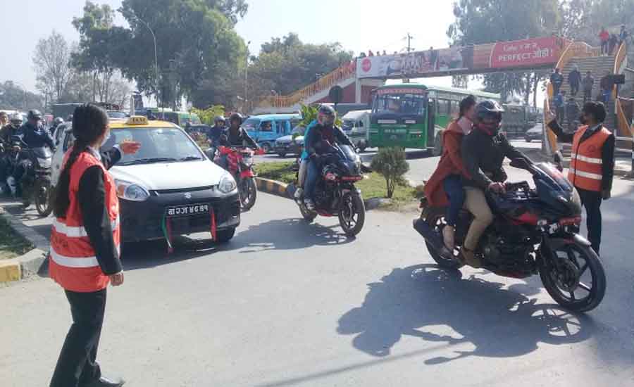 पुतलीसडकको जेब्राक्रसिङमा मानिसको ठूलो भीड थियो । दायाँबायाँ टल्कने रातो ट्राफिक स्वयंसेवक ज्याकेट लगाएका किशोरीहरु देखेपछि धेरैले जथाभावी बाटो काट्ने हिम्मत गरेनन् । बाटो काट्न खोजेकालाई किशोरीहरुले रोकिदिए । जोखिमको हेक्का नराखी कोही कपाल हल्लाउँदै र कोही मोबाइल चलाउँदै मस्तसँग बोटो काटिरहेका हुन्छन् । रोक्न खोज्दा कोहीले सहजतापूर्वक स्वीकारे पनि धेरैजसो अटेर गर्छन् ।