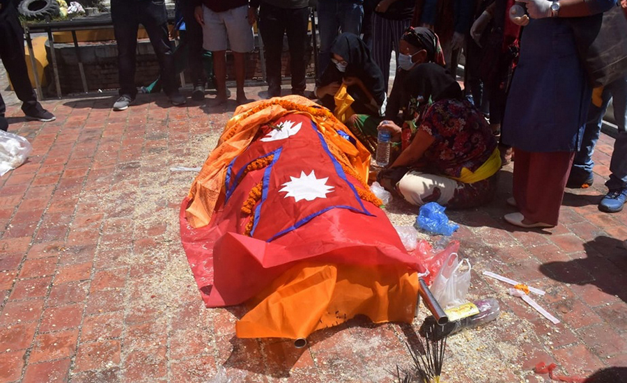 पशुपतिस्थित विद्युतीय शवदाहगृहमा अन्त्येष्टि गर्नुअघि अन्तिम श्रद्धाञ्जली दिने क्रममा उपराष्ट्रपति पुनले राष्ट्रिय झण्डा ओढाएका हुन् ।