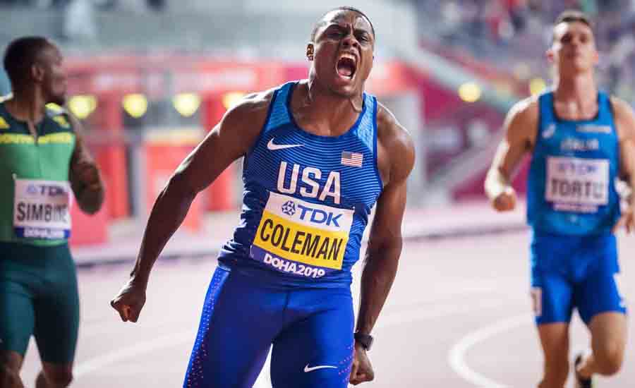 कतारको दोहामा जारी विश्व एथ्लेटिक्स स्पर्धामा अमेरिकी धावक क्रिस्टियन कोलम्यानले १०० मिटर दौडको स्वर्णपदक जितेका छन् । जमैकाका विश्वप्रसिद्ध १०० मिटर धावक उसेन बोल्टलाई पछ्याउँदै कोलम्यानले उपाधि जितेका हुन् । बोल्टले यस खेलबाट सन्यास लिइसकेका छन् ।
