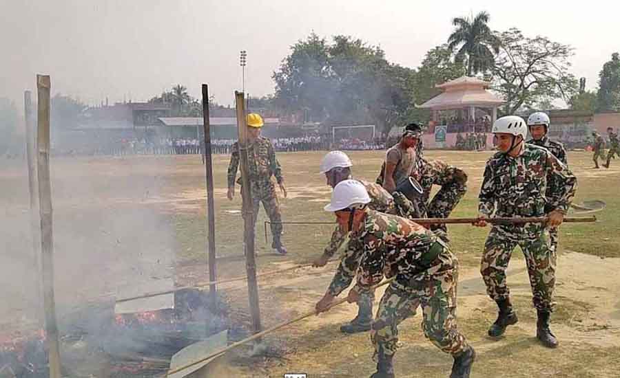 खेलमैदानमा आगलागी ः सेनाद्वारा नियन्त्रण र घाइतेको उद्धार