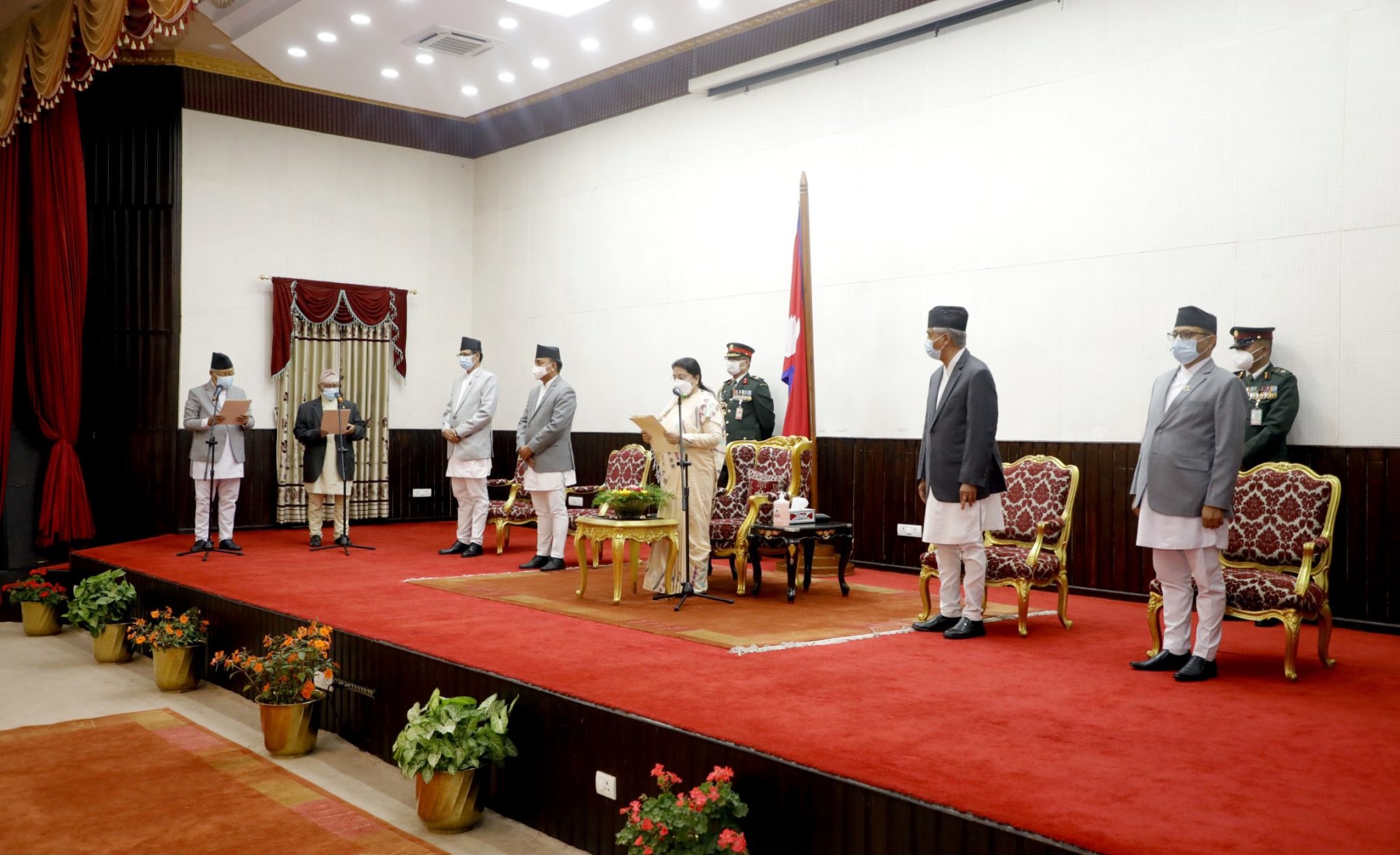 शपथ ग्रहण समारोहमा प्रधानमन्त्री शेरबहादुर देउवासहित मन्त्रीहरू, राष्ट्रियसभाका अध्यक्ष गणेशप्रसाद तिमिल्सिना, सभामुख अग्निप्रसाद सापकोटालगायत सहभागी थिए ।