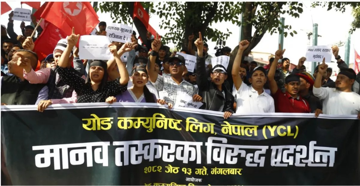 काठमाडौं - नेकपा माओवादीको भ्रातृ संगठन योङ कम्युनिष्ट लिग (वाईसीएल) ले प्रधानमन्त्री र गृहमन्त्रीको राजीनामा माग गर्दै माइतीघरमा प्रदर्शन गरेको छ ।