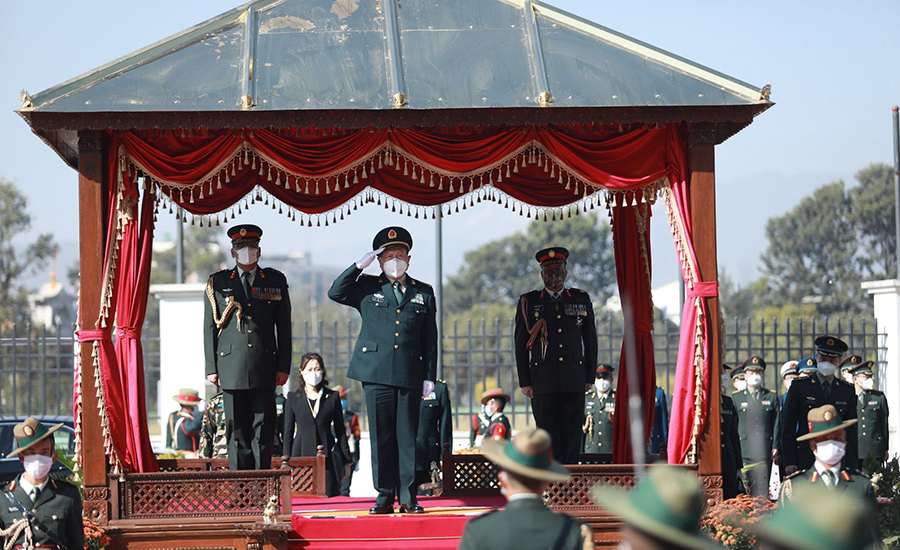 काठमाडौं । नेपाल भ्रमणमा रहेका चीनको राज्यपरिषद् सदस्य तथा रक्षामन्त्री वेइ फेङ्हेले नेपाली सेनाले दिएको सम्मान गारद (गार्ड अफ अनर) ग्रहण गरेका छन् ।