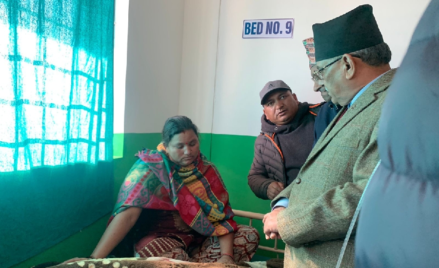 जाजरकोटका घाइतेलाई भेटेर रुकुम फर्किए प्रधानमन्त्री