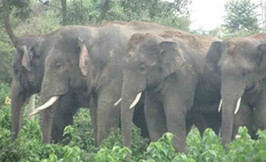 झापाको बाहुनडाँगीस्थित चिया बगानमा चार हात्ती