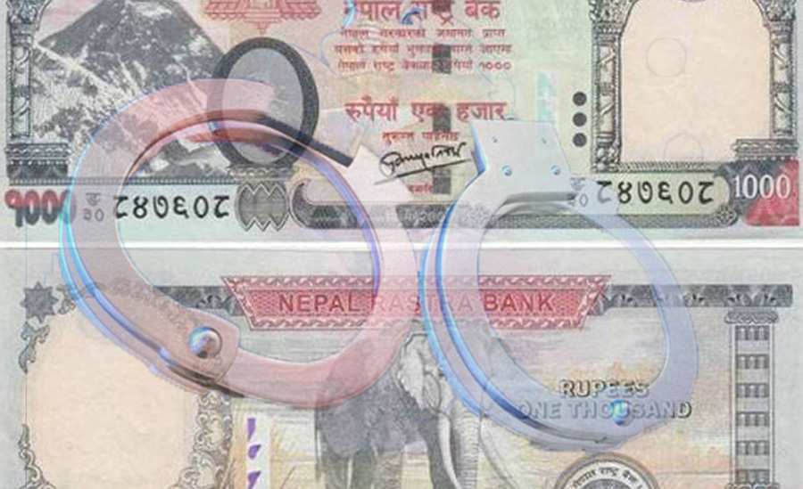 महानगरीय प्रहरी वृत्त कालिमाटीबाट खटिएको नेपाल प्रहरीको एक टोलीले नक्कली नोटसहित दुईजनालाई पक्राउ गरेको छ । सो टोलीले काठमाडौँ महानगरपालिका–१४ कलङ्की चोकबाट रु एक हजार दरका ३१ थान नक्कली नोटसहित बाराका २७ वर्षीय अनुश थापामगर र २२ वर्षीय रवि आलेमगरलाई आज बिहान पक्राउ गरेको हो ।
