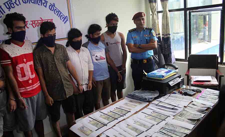 नक्कली नोट बनाउन प्रयोग हुने उपकरणसहित चार जनालाई कैलाली जिल्ला प्रहरी कार्यालयले पक्राउ गरेको छ । धनगढी उपमहानगरपालिका–१ नैनादेवी टोलका खगेन्द्र बम भन्ने खगेन्द्रबहादुर रजवार, चुरे गाउँपालिकाका भोजबहादुर बम, धनगढी उपमहानगरपालिका–३ का पल्लभराज भट्ट र महोत्तरी जिल्ला बर्दिवास नगरपालिकाका गोकुलबहादुर खड्कालाई नोट छाप्ने उपकरणसहित पक्राउ गरिएको प्रहरी प्रवक्ता दक्षकुमार बस्नेतले बताउनुभयो ।