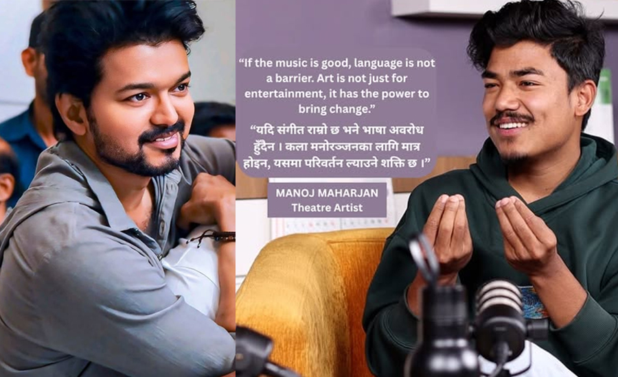 जब साउथ इन्डियन एक्सन सुपर स्टार नायक विजय थलापतिको फिल्म हेर्छु, नेपाली कलाकार मनोज महर्जनको याद ठ्याक्कै आउँदो रहेछ । किनकि, मेरो दृष्टिकोणमा विजय थलापति र मनोज महर्जनको मुहारमा समानता भएको महशुस गर्छु ।