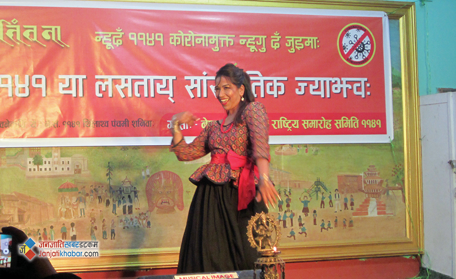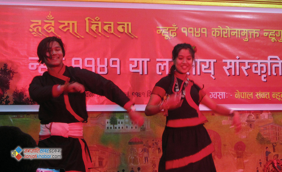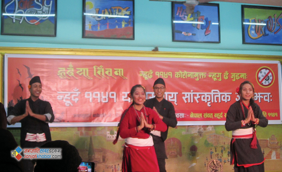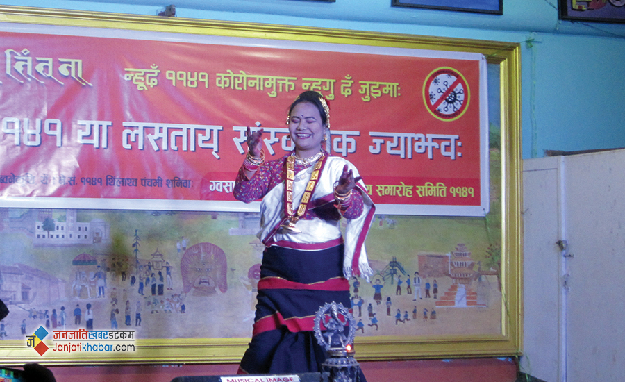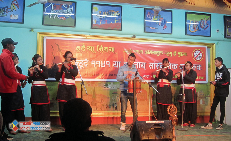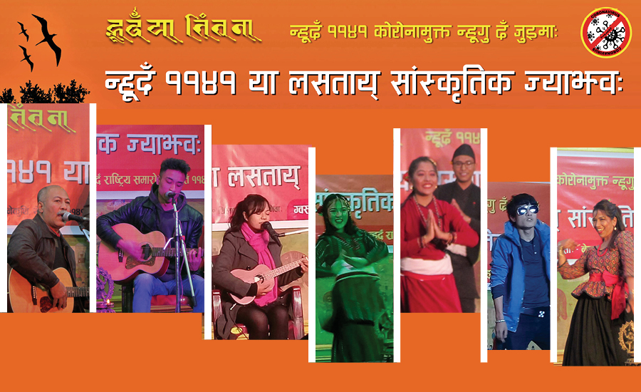 नेपाल संवत् न्हूदँ राष्ट्रिय समारोह समितिको आयोजनामा काठमाडौंको जगतसुन्दर ब्वनेकुथिमा शनिबार भएको ‘सेमी–भर्चुअल’ कार्यक्रममा नेवार कलाकारहरुले आ–आफ्ना प्रतिभा प्रस्तुत गरेका थिए ।