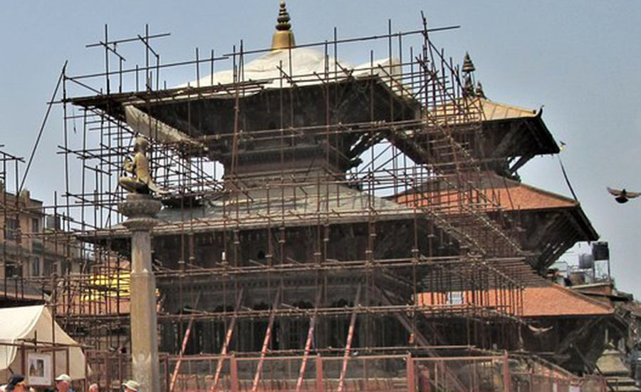 भारत सरकाले पुनःनिर्माण गर्ने भनिएको सो मन्दिर भूकम्प गएको चार वर्ष बितिसक्दा पनि चासो नदेखाएपछि ‘ललितपुरको इतिहासमा दान दातव्य’ भन्ने नारालाई पाटनवासीले अघि बढाइ गतवर्षको असार १२ गते गाईको पुच्छरमा डोरी बाँधेर मन्दिरको गजुर निकाली भत्काउने काम शुरुआत गरेका थिए ।