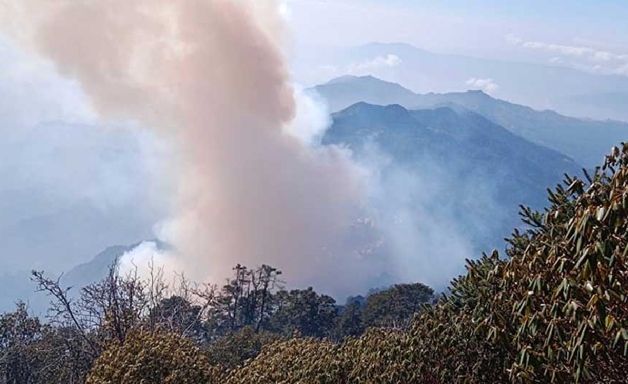 फुङलिङ् नगरपालिका–११ मा पर्ने सिम्बु सामुदायिक वनमा तीन दिनदेखि डढेलो लागिरहेको छ ।