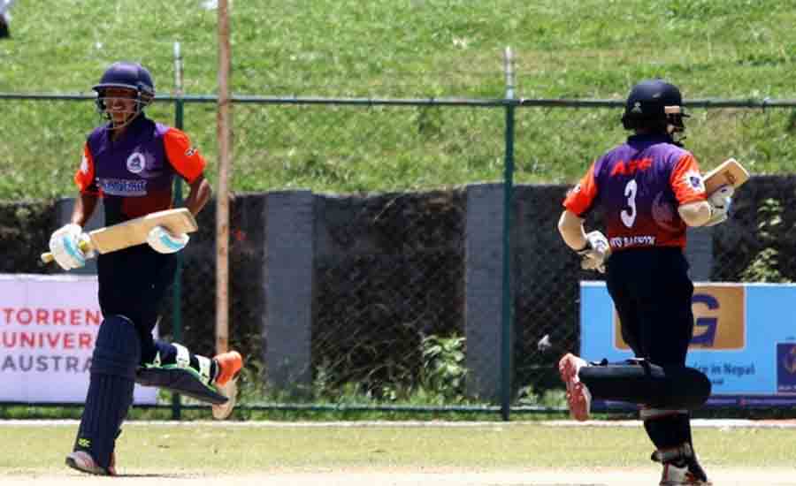कीर्तिपुरस्थित त्रिवि क्रिकेट मैदानमा आज भएको दोस्रो सेमिफाइनल खेलमा पुलिसले एपिएफलाई पाँच विकेटले पराजित गर्दै फाइलनमा पुगेको हो । यही जेठ २५ गते हुने फाइनल खेलमा पुलिसले अर्को विभागीय टोली त्रिभुवन आर्मी क्लबसंग प्रतिस्पर्धा गर्नेछ । बुधबार भएको पहिलो सेमिफाइनल खेलमा आर्मीले प्रदेश नं। ३ लाई पराजित गर्दै फाइनलमा पुगेको थियो ।