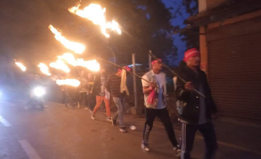 काठमाडौं - राप्रपा नेपाल समर्थित विद्यार्थी संगठन राष्ट्रिय प्रजातान्त्रिक विद्यार्थी संगठन नेपालले पेट्रोलियम पदार्थको मूल्य वृद्धिको बिरोधमा काठमाडौंमा शनिबार साँझ राँके जुलुस प्रदर्शन गरेको छ ।
