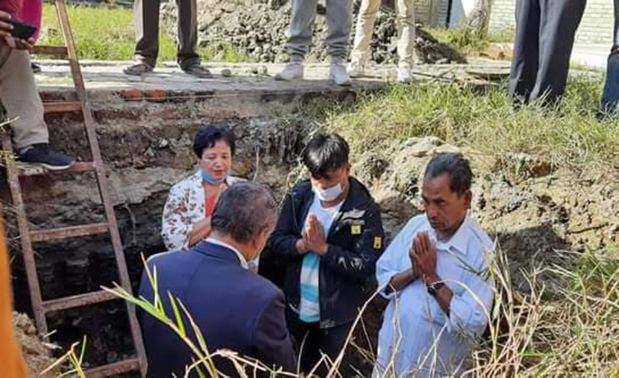 साे अवसरमा क्रमशः अखिल नेपाल भिक्षुमहासंघका महासचिव भिक्षु काैण्डन्य, अध्यक्ष श्री रामकाजी अवाले, जग्गादाता श्री दशलाल डंगाेल, केन्द्रका उपाध्यक्षद्वय एवं माननीय शाेभा शाक्य र एवं भवन निर्माण समितिका संयाेजक श्री अजरमान जाेशीले शिलान्यास गर्नुभयाे ।
