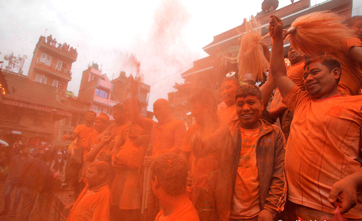 विहानैदेखि मध्यपुरथिमिको टोल टोलबाट विभिन्न देवताहरुको मूर्तिलाई खटमा विराजमान गराई खट बोकेर सिन्दुर खेल्दै पूजाआजाका साथ यो जात्रा मनाईएको हो ।